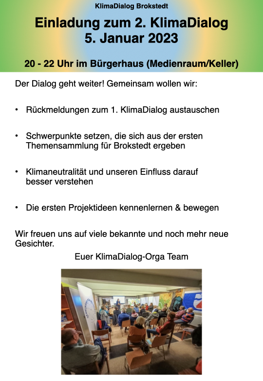 Für Fragen sprecht Malou Clausen oder Kerstin Koch gerne persönlich an oder schreibt eine Mail an Klimadialog.brokstedt@gmail.com